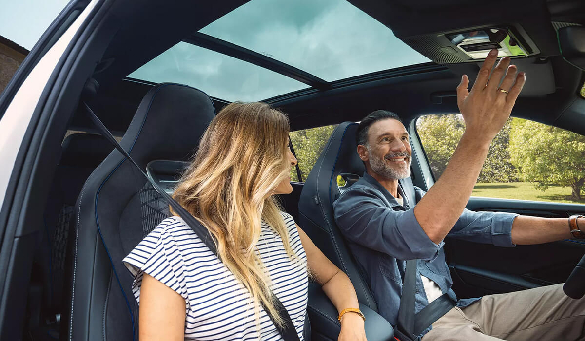 The new Tayron impresses with generous space for both passengers and luggage, supported by its extended wheelbase, along with a wealth of standard features. These include details like a multifunction steering wheel with physical buttons and door trim panels finished in the body colour. For an added touch of luxury, you can opt for the panoramic sliding and tilting sunroof, giving everyone on board a wide-open view of the sky. Inside, ambient lighting with up to 30 selectable colours allows you to create a personal atmosphere that suits your mood.